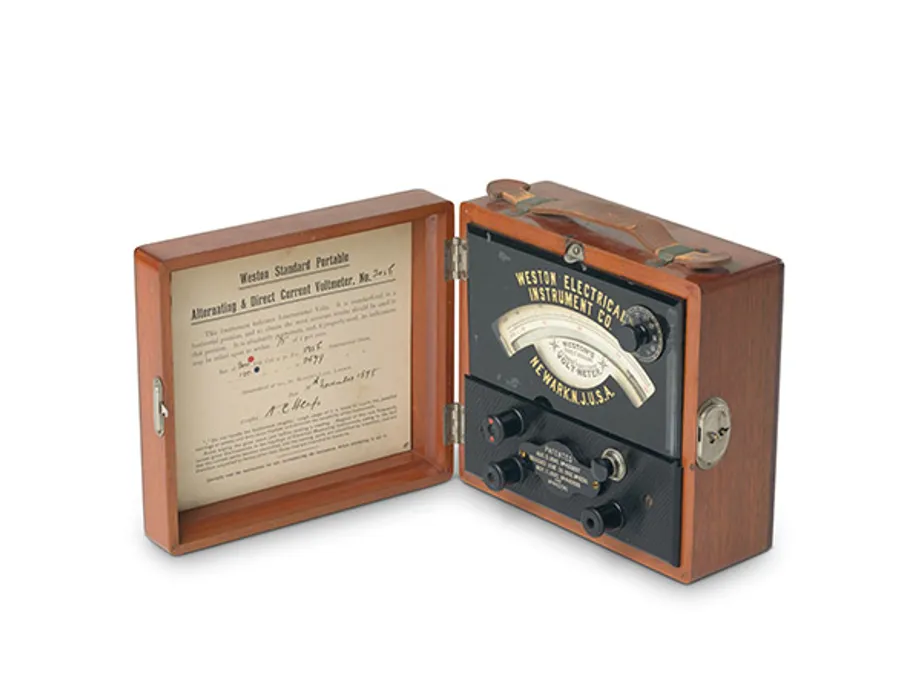 A panel on the voltmeter says that it was patented August 5 1890, no. 433637, reissued June 28 1892, no. 11250 and patented 11 November 1890, no. 440289 and no. 440290.