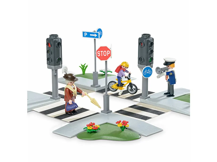 These traffic lights come from Playmobil's toy box set 3987 which contains Playmobil individuals, traffic lights, traffic signs and other road crossing items.