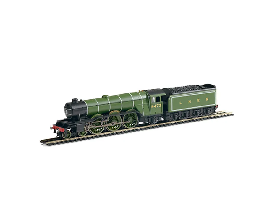 Following locomotive modifications which enabled the service to run non-stop, the A1 class locomotive 4472 Flying Scotsman (the model shown here) was used to haul the inaugural train of the new service from London on 1 May 1928. It successfully ran the 392 miles in a record at that time for a scheduled service.
