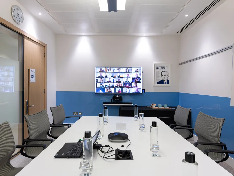 Alongside innovative audio-visual and video-conferencing facilities through a large HD screen mounted on the wall, the rooms can be set up to suit your needs.