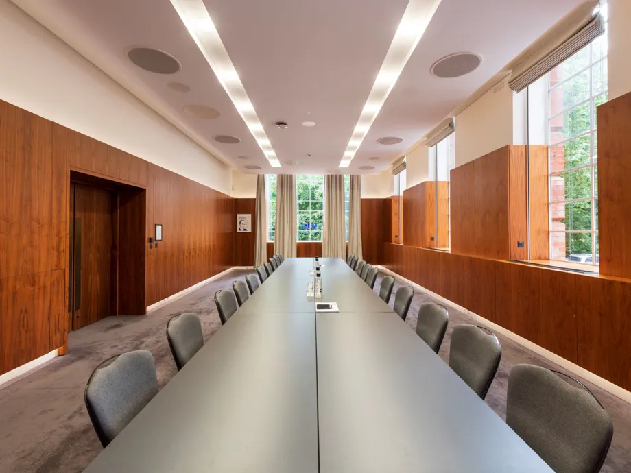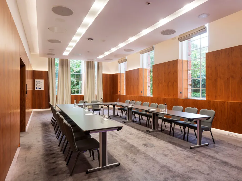 Subject to the set-up, this room’s capacity can be doubled when booked with the interconnecting Haslett Room.