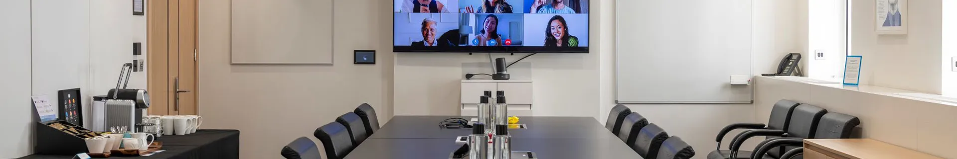 This intimate space is designed to provide a professional and comfortable environment for meetings, interviews, or presentations.