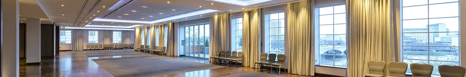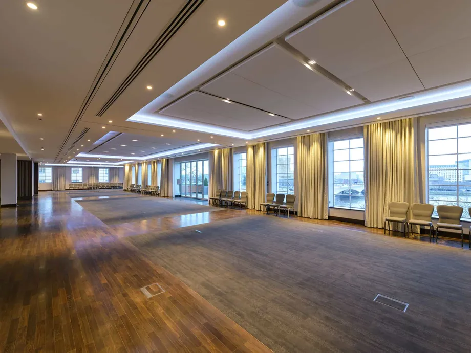 Acoustic partitions allow the room to be divided into as many as five sections. Find out more information on how the Riverside Room is split and its capacities.