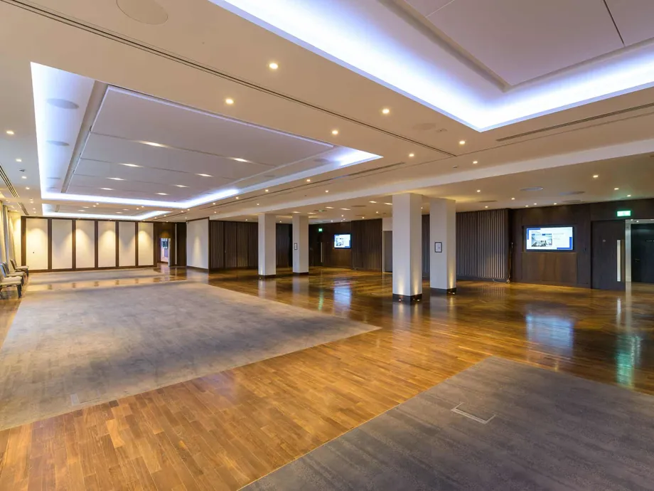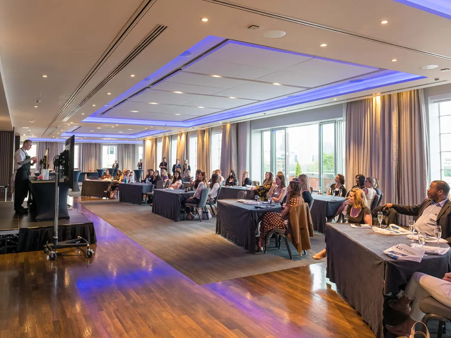 Following £280k of AV investment in 2019, the room now offers endless digital opportunities, with large screens and 4k video walls enabling every delegate to have full visibility when the room is used in landscape format.