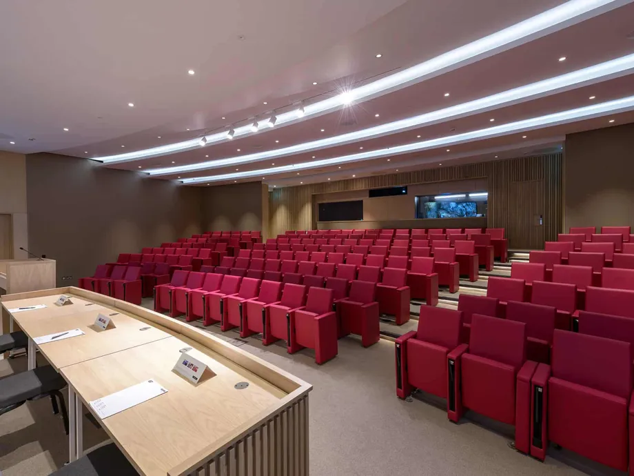 Purpose-built and conveniently constructed with tiered seating to ensure everybody can easily view the stage and screen, the space is ideal for sharing ideas and information with an audience in a contemporary venue.