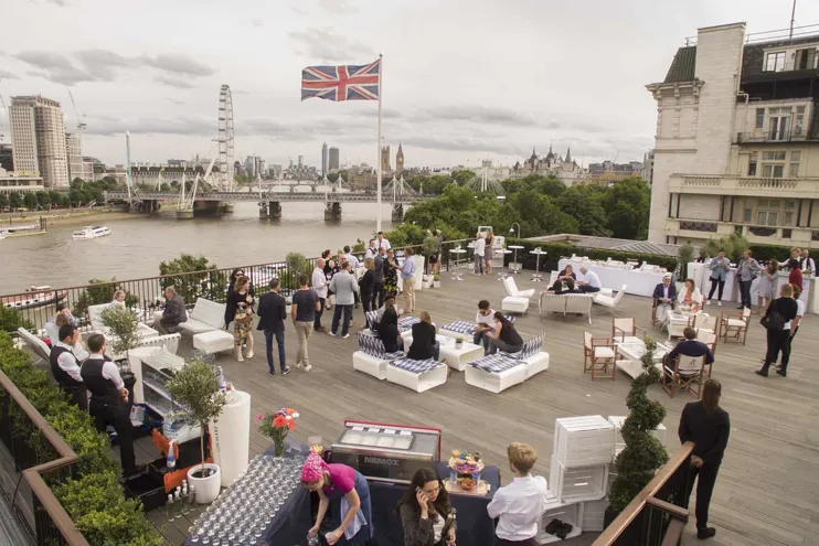 With a modern interior, this event venue space near Westminster and with London Thames riverside views has stunning rooftop spaces. Available for room hire for private functions large or small and corporate events.