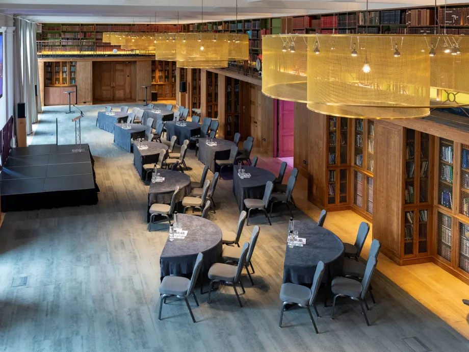 Although the library has developed into a fully functioning modern event space, it has maintained its original charm and continues to house a large number of historical technology and engineering books adorning floor to ceiling bookshelves surrounding the main function area.